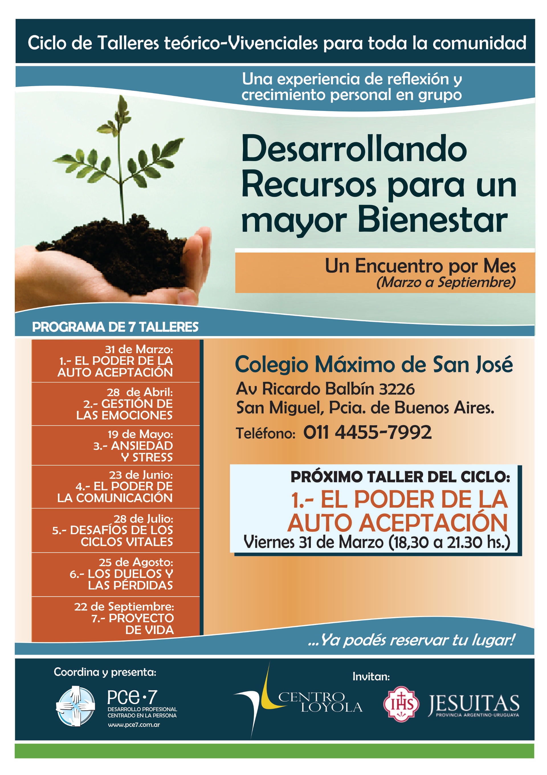 .La modalidad de cada taller es teórico-práctico-vivencial, y los ejes temáticos apuntan a ayudarnos en este camino de crecimiento personal, adentrándonos en la complejidad humana y por lo tanto en nuestro conocimiento personal.